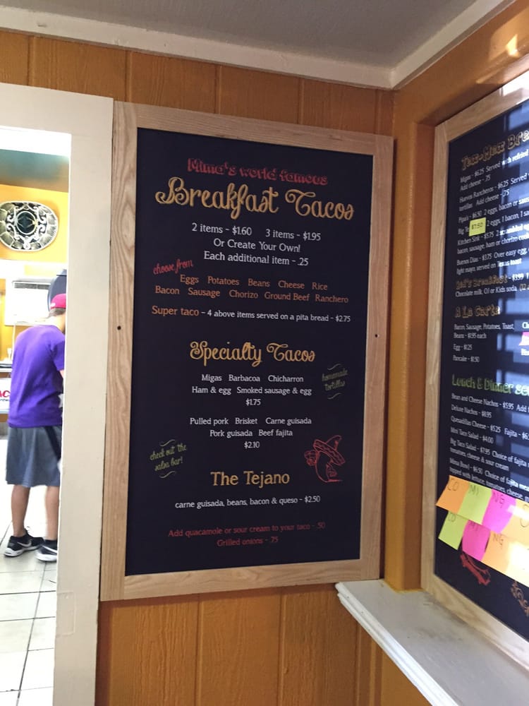 Introducing Mima's Tacos, a Tex-Mex and Mexican restaurant located in Wimberley, TX. This breakfast and brunch spot offers a variety of options, including fajitas, breakfast tacos like potato and egg, and delicious Carne Guisada. Customers rave about the friendly staff, quick service, and ample outdoor seating. The salsa bar with a variety of hot sauces adds a flavorful kick to the meal. Mima's Tacos also caters to vegetarians with many options available. Whether you're looking for a quick bite or a relaxed meal with friends and family, Mima's Tacos is a great choice. Don't miss out on the kitchen sink taco or brisket taco, they are sure to impress. With convenient amenities like Wi-Fi, bike parking, and TV, this casual spot is ideal for any occasion. Experience the best breakfast tacos and more at Mima's Tacos – a must-visit gem in the area.